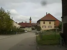 Neyruz-sur-Moudon had an area, as of 2009, of 3.5 square kilometers (1.4 sq mi). Of this area, 2.46 km2 (0.95 sq mi) or 69.9% is used for agricultural purposes, while 0.93 km2 (0.36 sq mi) or 26.4% is forested. Of the rest of the land, 0.12 km2 (30 acres) or 3.4% is settled (buildings or roads) and 0.01 km2 (2.5 acres) or 0.3% is unproductive land.[14] The former municipality is located along the Moudon to Yverdon-les-Bains road. It consists of the haufendorf village (an irregular, unplanned and quite closely packed village, built around a central square) of Neyruz-sur-Moudon and the settlements of La Praire, Les Rutannes and Le Moulin Tardy.