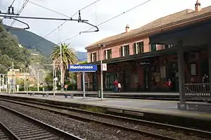 Monterosso railway station (Stazione di Monterosso) is located on the Genoa–Pisa railway, Italy. It serves Monterosso al Mare, which is one of the five towns of the Cinque Terre.
