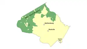 The Agricultural Reserve is a designated land use zone in Montgomery County, Maryland. The 93,000 acres (380 km2) zone was created in 1980 by the Montgomery County Council to preserve farm land and rural space in the northwestern part of the county. The farmland protection program has been characterized as "the most famous, most studied and most emulated" program of its kind in the United States.[1]