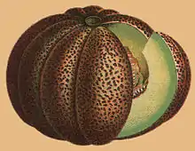 The Montreal melon, also known as the Montreal market muskmelon or the Montreal nutmeg melon (French: melon de Montréal), is a variety of melon recently rediscovered and cultivated in the Montreal, Quebec, Canada, area. Scientifically, it is a cultivar of Cucumis melo subspecies melo.