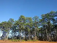 According to the U.S. Census Bureau, the county has a total area of 705.69 square miles (1,827.7 km2), of which 697.68 square miles (1,807.0 km2) is land and 8.00 square miles (20.7 km2) (1.13%) is water.[14] Moore County is bordered by Chatham, Lee, Harnett, Cumberland, Hoke, Scotland, Richmond, Montgomery County, and Randolph counties.[4] It lies mostly within the Piedmont region, though some of the county extends into the state's Coastal Plain.[15] Additionally, the county lies within the Sandhills region,[16] and about two-thirds of its land are host to sandy soils.[17] The county drains into the Cape Fear River Basin and Lumber River Basin.[18] Local waterways include Pine Lake, Deep and Little Rivers[19][20] and Aberdeen, Big Governors, Big Juniper, Drowning, Herds, McLendons, Sugar, and Little Crane Creeks.[15][21][22][23]