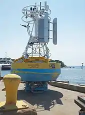 Moorings often include surface buoys that transmit real time data back to shore. The traditional approach is to use the Argos System. Alternatively, one may use the commercial Iridium satellites which allow higher data rates.