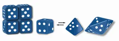 Morpheeins are proteins that can form two or more different homo-oligomers (morpheein forms), but must come apart and change shape to convert between forms. The alternate shape may reassemble to a different oligomer. The shape of the subunit dictates which oligomer is formed.[1][2] Each oligomer has a finite number of subunits (stoichiometry). Morpheeins can interconvert between forms under physiological conditions and can exist as an equilibrium of different oligomers. These oligomers are physiologically relevant and are not misfolded protein; this distinguishes morpheeins from prions and amyloid. The different oligomers have distinct functionality. Interconversion of morpheein forms can be a structural basis for allosteric regulation, an idea noted many years ago,[3][4] and later revived.[1][2][5][6] A mutation that shifts the normal equilibrium of morpheein forms can serve as the basis for a conformational disease.[7] Features of morpheeins can be exploited for drug discovery.[1][5][8] The dice image (Fig 1) represents a morpheein equilibrium containing two different monomeric shapes that dictate assembly to a tetramer or a pentamer. The one protein that is established to function as a morpheein is porphobilinogen synthase,[2][9][10] though there are suggestions throughout the literature that other proteins may function as morpheeins (for more information see "Table of Putative Morpheeins" below).