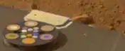 In 2007, Madsen's team was invited by NASA to design the three radiometric calibration targets for the Phoenix mission called "Improved Sweep Magnet Experiment" (ISWEEP).[10] The target consisted of an aluminum holder (carrying structure) containing a palette of different calibrated colors of synthetic pigmented rubber with "sweeping magnets" underneath to clear the colored material of the magnetic Martian dust, assisting in calibrating the cameras of the mission[11]