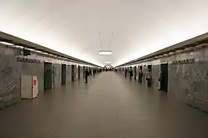 Moskovskaya (Russian: Моско́вская) is a station on the Moskovsko–Petrogradskaya Line of the Saint Petersburg Metro. Although it was opened on December 25, 1969, it is equipped with the so-called platform screen doors. Moskovskaya metro-station is one of the first stations in the world with such a system of doors.