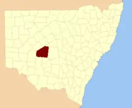 - "Mossgiel County". Geographical Names Register (GNR) of NSW. Geographical Names Board of New South Wales.