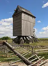 In 1939, it was decided to rebuild the mill, and a public subscription was opened for the purpose. Sufficient money had been collected by the time war broke out in September 1939.[1] A post mill from Attiches, Nord was bought and moved to Valmy.[2] The mill was officially inaugurated in September 1947.[1] On 10 May 1989, the mill was listed as a Monument historique.[2] A restoration of the mill was carried out in 1998 at a cost of F1,200,000. On 26 December 1999, the mill was blown down by Cyclone Lothar. It was decided that the mill would be rebuilt. The first stone was laid on 16 September 2004 and the rebuilt mill was inaugurated on 20 September 2005. The restoration cost €380,000.[3]