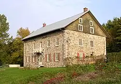 In 1672 the intendant Jean Talon granted the seigneury of Lotbinière to René-Louis Chartier de Lotbinière (1641-1709). The seigneur reserved an estate for himself, as was normal at the time.[1] A flour mill began operation on the Ruisseau Saint-Eustache in 1693.[2] The mill was established in the area called Domaine-de-Lotbinière, the first nucleus of the seigneury.[3] It was a "banal mill" (moulin banal), built to meet the seigneur's obligation to build a flour mill for the people of the seigneury. They had to have their grain ground there and had to pay a milling fee, the droit de banalité. In 1769 the seigneur built a new mill, and in 1799 this was replaced by the present Domaine-de-Lotbinière mill.[1]