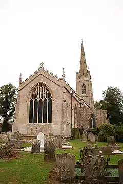 All Saints' Church was built about 1180, instigated by Prior John of Spalding. It took approximately 60 to 70 years to build, and was heavily restored from 1866 to 1867 by William Smith. The church has a rood screen dating from around 1425. There is a memorial in the floor of the church to Prudence Corby, who apparently died on "Julye the 36th 1793".[10] The taller and slender spire of the church reaches 158 feet (48 metres) in height.[11]