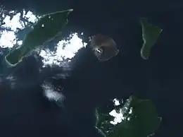 ![]() Aerial view of Anak Krakatoa looking south-southeast toward Rakata island, c. 1979 | |