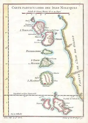 Mare (in Dutch Pottebackers) is a small volcanic island at the west side of Halmahera island, Indonesia. The 2 × 3 km island is part of the volcanic arc chain of Halmahera volcanoes.[1] Historically, once discovered by the modern Europeans in the late 17th century (and possibly sooner), the Europeans (i.e. Dutch or Spanish), had come to colonize the people and introduce the system of Mercantilism.