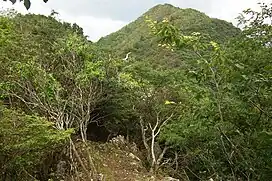 Mount Mitake is the highest mountain in the Taki Mountains, including Mount Nishigatake and Mount Koganegadake. The Taki Mountains were one of the most holiest places for shugendō from Kamakura period to Muromachi period. However, Tanba Shugendō, a sect of Shugendo in Tanba Province, lost against Yamato Shugendō, another Shugendo sect of Yamato Province including Mount Ōmine, all of the temples in the Taki Mountains were burned in 1482.
