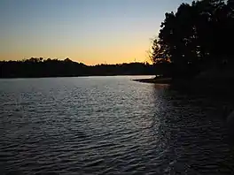 Mountain Island Lake is a lake northwest of Charlotte, North Carolina created in 1924 to coincide with the building of Mountain Island Hydroelectric Station. It is named after the mountain which appears as an island in the lake, and the surrounding area is identified by the lake's name. The shape of the lake follows the meander of the Catawba River's course, dammed near the Mount Holly Wastewater Plant. Full pond elevation is approximately 647.5 feet (197 m). The lake has around 3,281 acres (13 km2) of surface area and 61 miles (98 km) of shoreline.