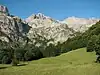 Albania is mostly mountainous, with the first alpine regions forming towards the end of the Jurassic period. During the Cenozoic era, the malformation of the Albanides accelerated, causing the subterranean landscape to take its present form.[1][2] The average altitude of the country is 714 m (2,343 ft), almost three times that of Europe. The highest summits are situated in the Albanian Alps and the eastern mountain range, with Korab being the highest peak, at 2,764 m (9,068 ft) above sea level.