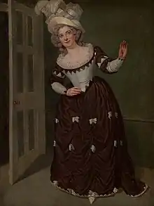 On 16 July 1790 she appeared in She Would and She Would Not or The Kind Imposter by Colley Cibber at Covent Garden. There is a painting of her playing Viletta in this play by Samuel De Wilde, however the Garrick Club note that she never played the role (in London) although she did appear in the role of Rosa but for one night only.[2] The painting was engraved by J.Thornthwaite and published the following year.[3]