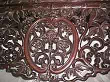 Mudiao is traditional Chinese wood-carving, a form of sculpture, and is still practiced today. Mudiao is characterised by detailed fretwork,[1][2] and is sometimes covered with gold foil.[3] Mudiao products include chests, furniture, screens and even buildings.[1][4][5] Chippendale was strongly influenced by mudiao work.[6]