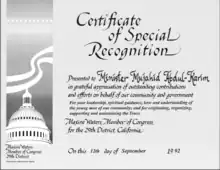 - Special Recognition for originating Watts Peace Treaty by Congresswoman Maxine Waters