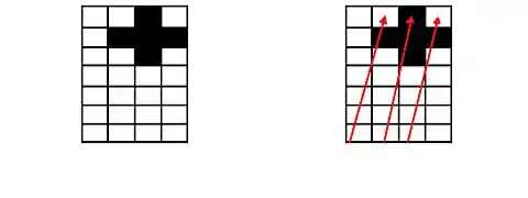 When working on a two-dimensional Cartesian mesh, a Fourier transform along either axes will result in the two-dimensional plane becoming a cylinder as the end of each column or row attaches to its respective top forming a cylinder. Filtering on a helix behaves in a similar fashion, except in this case, the bottom of each column attaches to the top of the next column, resulting in a helical mesh. This is illustrated below. The darkened tiles represent the filter coefficients.