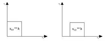 In order to visualize the overlap-add method more clearly, the following illustrations examine the method graphically. Assume that the input has a square region support of length N in both vertical and horizontal directions as shown in the figure below. It is then broken up into four smaller segments in such a way that it is now composed of four smaller squares. Each block of the aggregate signal has dimensions .