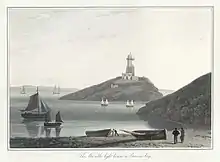 The first human crop growers arrived in the area over 5,000 years ago.[2] However, evidence of human habitation is much older and possibly dates as far back as 30,000 years ago—established by the dating of the famous Paviland skeleton located in a cave some 10–15 miles along the coast from Mumbles Head.[3] The skeleton is kept in the Oxford Museum of Natural History, having been excavated by Rev William Buckland, who was Professor of Geology at Oxford University at the time. However, Swansea Museum has two well-finished flint axe-heads, one from Newton and one from an allotment on Mumbles Hill. Much of what we know about the first metalworkers, in the Bronze Age, has been learned from their tombs: pieces of pottery, a cairn and remains of a hut were found. The cliffs above the Redcliffe flats at Caswell Bay contain the ridged remnants of a Redley Cliff Iron Age hill-fort.