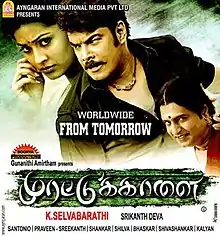 Murattu Kaalai (transl. Raging Bull) is a 2012 Tamil-language action film written and directed by K. Selva Bharathy and produced by Amirtham Gunanidhi. A remake of the 1980 film of same name, it stars Sundar C., Sneha and Sindhu Tolani, while Suman and Vivek play supporting roles. The music was composed by Srikanth Deva. The film, which had been under production since 2008, released on 15 June 2012 to negative reviews and failed to repeat the success of original.[2]