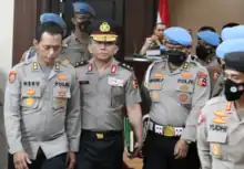 The controversy prompted the national police to intervene, with police chief General Listyo Sigit Prabowo taking over the investigation, forming a special team including members of the National Human Rights Commission and Police Commissions.[14] Sambo was suspended from 18 July 2022,[11][23] while three police generals and 25 officers were reportedly transferred for interfering with the investigation.[14] Indonesia's Coordinating Minister for Political, Legal and Security Affairs, Mahfud MD, said the result of the second autopsy would be made public.[24]