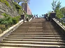 After the altercation, the attackers went through Majors' pockets and fled.[11] According to Lewis, after the trio fled, Weaver told him that Majors had bit him.[17][16] Majors then attempted to climb up the steep stairs found at the park's entrance nearest to the university.[18] Majors staggered up the stairs and collapsed at the corner of Morningside Drive and 116th Street,[19][2] before being found by a security guard at the top of the staircase.[14] While still conscious, Majors told a witness of the events at the park.[20] Police responded to the attack after a 911 call, finding Majors with multiple stab wounds. Majors was pronounced dead at Mount Sinai Morningside Hospital.[4]
