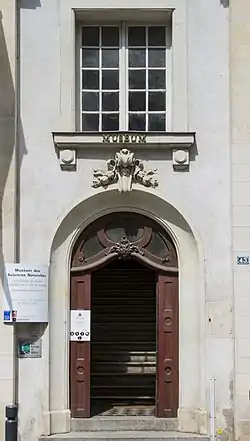 The Muséum des sciences naturelles d'Angers (commonly called Muséum d'Angers, as opposed to the arts museums, called Musées d'Angers) is a municipal museum in Angers (Maine-et-Loire, France). Dedicated to Natural History, the Muséum d'Angers houses in its collections about 530,000 objects, including 3,000 birds, 20,000 shells, 50,000 fossils, 80,000 insects and 350,000 herbarium samples, as well as hundreds of specimens taxidermised or in liquid, skeletons, minerals, technical instruments and Documents.[3] The Muséum d'Angers receives annually about 20,000 visitors,[4] as well as school groups, interns, researchers and volunteers.