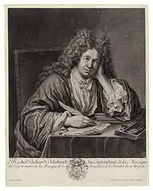 French Baroque music composer Michel Richard Delalande (1657–1726), pen in hand