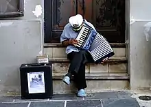 Jíbaros are small farmers of mixed descent who constituted the overwhelming majority of the Puerto Rican population until the mid-twentieth century.[1] They are traditionally recognized as romantic icons of land cultivation, hard-working, self-sufficient, hospitable, and with an innate love of song and dance. Their instruments[2] were relatives of the Spanish vihuela, especially the cuatro — which evolved from four single strings to five pairs of double strings —[3] and the lesser known tiple.[4] A typical jíbaro group nowadays might feature a cuatro, guitar, and percussion instrument such as the güiro scraper and/or bongo. Lyrics to jíbaro music are generally in the décima form, consisting of ten octosyllabic lines in the rhyme scheme abba, accddc. Décima form derives from 16th century Spain. Although it has largely died out in that country (except the Canaries), it took root in various places in Latin America—especially Cuba and Puerto Rico—where it is sung in diverse styles. A sung décima might be pre-composed, derived from a publication by some literati, or ideally, improvised on the spot, especially in the form of a “controversia” in which two singer-poets trade witty insults or argue on some topic. In between the décimas, lively improvisations can be played on the cuatro. This music form is also known as "típica" as well as "trópica".
