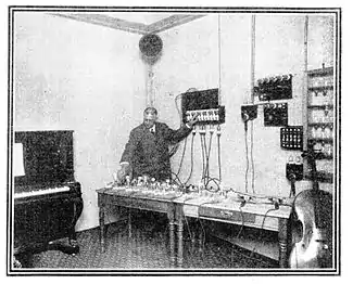 However, an experimental commercial Musolaphone service was established in south-side Chicago in 1913, working in conjunction with the Illinois Telephone & Telegraph Co. Two features that were superior to the Telephone Herald "telephone newspaper" systems was that listening was done over loudspeakers instead of headphones, and the system did not need dedicated, separate telephone lines, because "as soon as connection is made in the telephone exchange to the subscriber's line upon which the service is being given, the other equipment is automatically disconnected. When the subscriber desires to use the telephone, disconnection from the Musolaphone service, as it is called, is obtained by the operation of a push button installed at the telephone instrument".[1] John J. Comer, former General Manager of a similarly designed Tel-musici installation at Wilmington, Delaware, was described as the inventor.