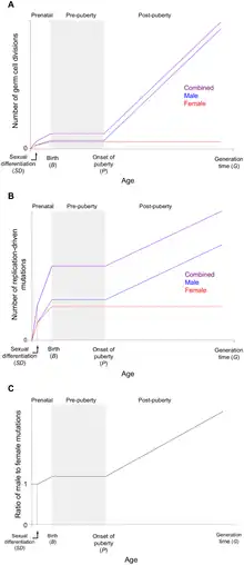 Male mutation bias is also called "Male-Driven Evolution". The rate of male germline mutations is generally higher than in females.[11] The phenomenon of Male mutation bias have been observed in many species.[12]
