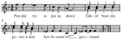 Like much of The Who's earlier Mod output, the song boasts clear influences of American rhythm and blues, most explicitly in the call and response form of the verses. Daltrey would sing a line, and the backing vocalists, Pete Townshend (low harmony) and John Entwistle (high harmony), would respond with the refrain "Talkin' 'bout my generation":