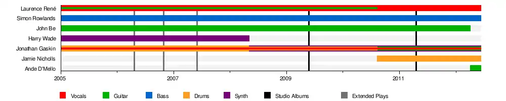 - Laurence René'- Vocals (2005–2012), Guitar (2005–2010)