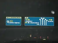 Road sign at the R553 Golden Highway off-ramp before the Diepkloof Interchange