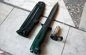 The NRS-2 (Нож Разведчика Стреляющий, "Scout Firing Knife") (official GRAU index 6P25U) is a gun hybrid with a combination of a knife blade and a built-in single-shot shooting mechanism designed to fire a 7.62×41mm SP-4 (СП-4) cartridge, originally designed for the PSS silent pistol.[1]