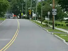 Downtown, maintenance of NY 10 shifts from the New York State Department of Transportation (NYSDOT) to the village at Mohawk Street. The highway remains locally owned for three blocks to Incinerator Road, where the route becomes state-maintained once more.[4] During this stretch, NY 10 intersects NY 5S at Main Street. North of Incinerator Road, the route passes under the Thruway before crossing into the neighboring village of Palatine Bridge at the midpoint of the Mohawk River. On the northern riverbank, NY 10 meets NY 5 and overlaps the route westward for a block before continuing northward into the largely rural town of Palatine.[3]