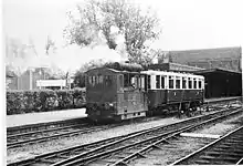 Naarden-Bussum is a railway station in the north of Bussum, Netherlands that also serves the neighboring community of Naarden. The station has one standard platform and one island platform. It has a total of four tracks, of which one track is for passing trains only. The station was opened on 10 June 1874. The station is on the Amsterdam - Hilversum - Amersfoort line, known as the Gooilijn. The station was also used as a tram station for the Bussum - Huizen tram service from 1883 to 1958.