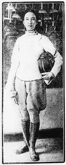 Even as a girl, Nadine Hwang tried to escape the bonds of convention and gender roles.[6] She learned to drive a car and fly small planes at a very early age. "Everything fascinates me about these Western mechanics," she confided to an Excelsior journalist in 1928. "I would love to sit on a locomotive and drive a train at full steam". She liked to wear men's clothes, whether for sports or for a party, where, for example, she would appear in traditional Aragonese costume to dance the Aragonese Jota with a female rider.[7] Japanese-American artist and designer Isamu Noguchi recalled meeting a "beautiful lieutenant in the army of the young Marshal Chang Hsueh-liang" in 1930. He described her as "piratical." She learned sports such as polo, cricket, and riding. Unthinkable to the average Chinese women of her time. Not long ago, Chinese women had been freed from the thousand-year-old tradition of foot binding.[8]