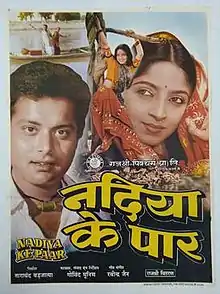 Nadiya Ke Paar (transl. Across The River) is a 1982 Indian drama film directed by Govind Moonis. Based on the first half of the novel Kohbar Ki Shart by Keshav Prasad Mishra. It featured an ensemble cast comprising Sachin, Sadhana Singh, Inder Thakur, Mitali, Savita Bajaj, Sheela David, Leela Mishra and Soni Rat.[3]