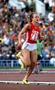 Nadezhda Fyodorovna Olizarenko (Russian: Надежда Фёдоровна Олизаренко, Ukrainian: Надія Федорівна Олізаренко; née Mushta; 28 November 1953 – 18 February 2017) was a Soviet middle-distance runner. At the 1980 Olympics she won the 800 m event, setting a world record at 1:53.43, and finished third in the 1500 m. Her 800 m world record was improved in 1983, but still remains the second-best time over that distance. Other than world record holder Jarmila Kratochvílová in 1983, only two athletes, Pamela Jelimo of Kenya, in 2008, and Caster Semenya of South Africa, in 2018, have come within a second of Olizarenko's mark since it was set.[5]