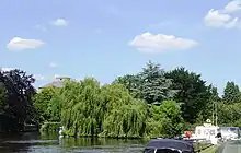The frontage downstream of the bridge is occupied by a riverside cafe, chandlers and navigation stores, and boat hire facilities. Behind this is an extensive public open space.