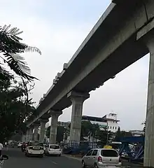 Nagpur Metro is a rapid transit system for the city of Nagpur, Maharashtra, India.[6][7] Phase I of the metro project cost was estimated to cost ₹8,650 crore (equivalent to ₹140 billion or US$1.7 billion in 2023)[8] but the final project cost incurred was ₹9,279 crore (US$1.2 billion).[9] In February 2014, the Government of Maharashtra gave approval for the Metro Project,[10] while the Government of India's Ministry of Urban Development had given "In Principle" approval for the Project.[11] On 20 August 2014, Union Cabinet gave approval for the development of project, and Prime Minister Narendra Modi laid foundation stone on 21 August on his visit to the city.[8] Construction on the project began on 31 May 2015,[12] with trial run beginning on 30 September 2017.