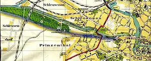 An 1857 map of Bydgoszcz shows the path beginning at the intersection with Holy Trinity Street (then Berliner Strasse) next to the bridge over the canal,[5] then entering the western suburban city of Prinzenthal. In 1872, a railway viaduct was built over the street for the line to Inowrocław (in 1897, the line extended to Żnin and, in 1908, to Poznań). After Bydgoszcz returning to Polish territory in 1920, suburban area, including Prinzenthal (today's Wilczak and Miedzyń) have been incorporated into the city administrative limits, making Nakielska street almost entirely part of Bydgoszcz. The final part was "acquired" during city border changes in 1954.[6]