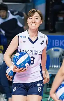 Nam Jie-youn (born May 25, 1983 in Seoul) is a former South Korean volleyball player, who played as a libero. She was a member of the Women's National Team. She plays for Hwaseong IBK Altos. She was part of the silver medal winning team at the 2010 Asian Games.[1]