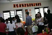 Nan Chiau High School commemorated its 70th anniversary in 2017 along with Nan Chiau Primary School (its former ancillary primary section before 2001). On 27 January 2017, a total of 3,398 staff and students of both institutions came together to craft knots on a triple-ring with red strings, which resembles the school logo. The event set a national record for the most people making knotted rings together.[33] A dedicated maker-space was also opened on 10 March 2017. Named The Nest, the tools-equipped space allow students to design, construct or modify meaningful or handy items in their own accord.[34][35]