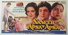 Naseeb Apna Apna (transl. To each their own fate) is a 1986 Indian Hindi-language drama film starring Rishi Kapoor, Farah Naaz and Raadhika.[1] It is a remake of the 1982 Tamil film Gopurangal Saivathillai.[2]