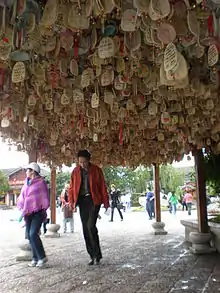 The ancient Nakhi town of Lijiang is now a major tourist destination. In the old town, the Nakhi rent buildings to Han merchants who run shops catering to tourists.