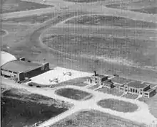 By 1935, the need for an airport larger and closer to the city than Sky Harbor Airport was realized and a citizens' committee was organized by Mayor Hilary Ewing Howse to choose a location. A 340-acre (1.4 km2) plot along Dixie Parkway (now Murfreesboro Road) composed of four farms was selected, and construction began in 1936 as one of the first major Works Progress Administration projects in the area. The airport was dedicated on November 1, 1936, as Berry Field, named after Col. Harry S. Berry, the Tennessee administrator for the Works Progress Administration. It opened in June 1937 with much fanfare, including parades, an air show, and an aerial bombardment display by the 105th Aero Squadron, which was based at the field.[7] Passenger service began in mid-July through American Airlines and Eastern Airlines, both of which operated Douglas DC-3s. The new airport had three asphalt runways, a three-story passenger terminal, a control tower, two hangars and a beacon, and was built at a cost of $1.2 million. In its first year Berry Field served 189,000 passengers.[6][8][9]