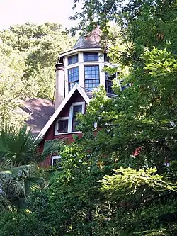 The Nathaniel Brittan Party House was built in 1872, as a Victorian-style, two-and-a-half story redwood framed structure with an octagonal folly.[8] There is a shiplap exterior siding that appears to go in multiple directions.[5][8] The building has steep gables and an octagonal windowed cupola.[5] This building is one of the few remaining examples of nineteenth century Octagon Mode building in the San Francisco Bay Area.[8]